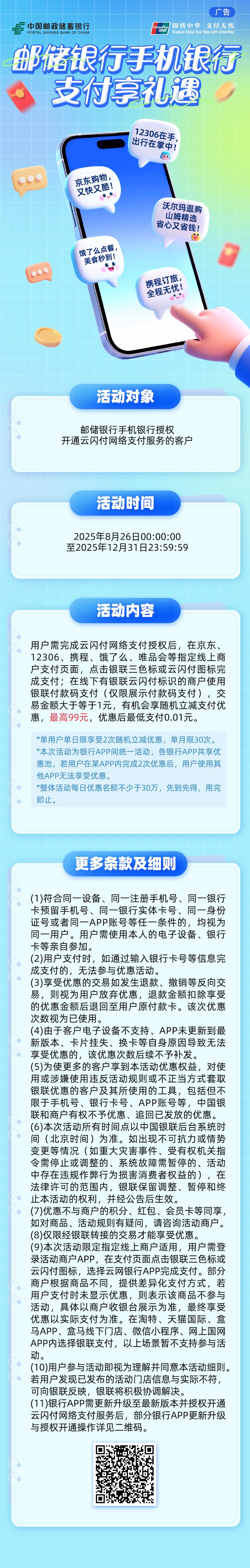 邮储银行手机银行支付享礼遇