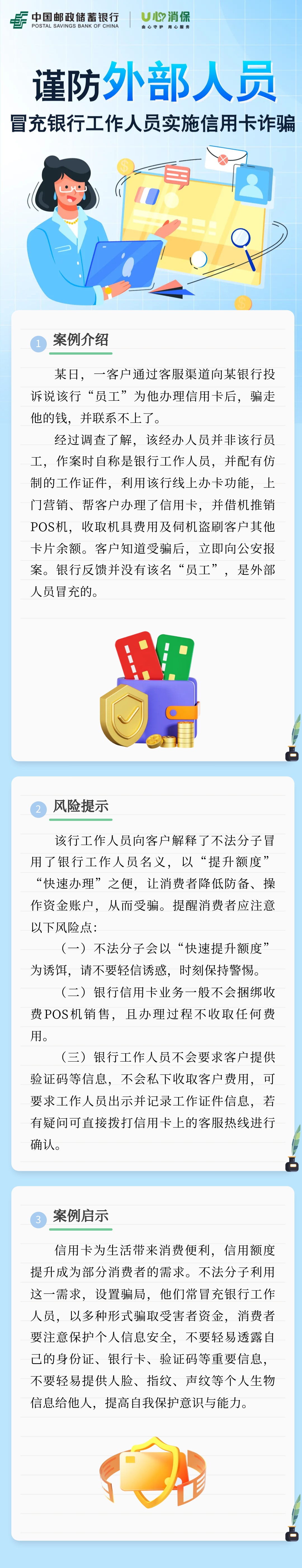 【金融教育】谨防外部人员冒充银行工作人员实施信用卡诈骗