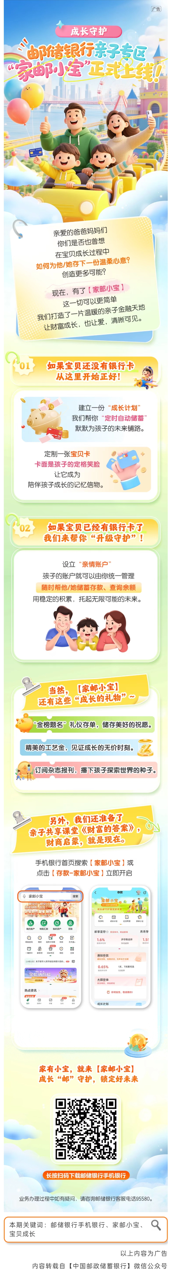 【成长守护】邮储银行亲子专区“家邮小宝”正式上线!