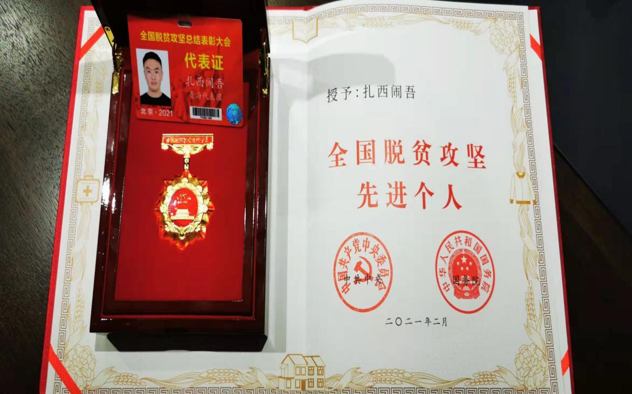 2月25日,全国脱贫攻坚总结表彰大会在北京人民大会堂隆重举行。中共中央总书记、国家主席、中央军委主席习近平在大会上发表重要讲话,庄严宣告我国脱贫攻坚战取得全面胜利。大会授予1981名同志“全国脱贫攻坚先进个人”称号,授予1501个集体“全国脱贫攻坚先进集体”称号。中国邮政储蓄银行青海省分行班玛县支行行长、果洛州下大武乡年扎村第一书记扎西闹吾同志荣获“全国脱贫攻坚先进个人”称号,以表彰其在打赢脱贫攻坚战中作出的突出贡献。