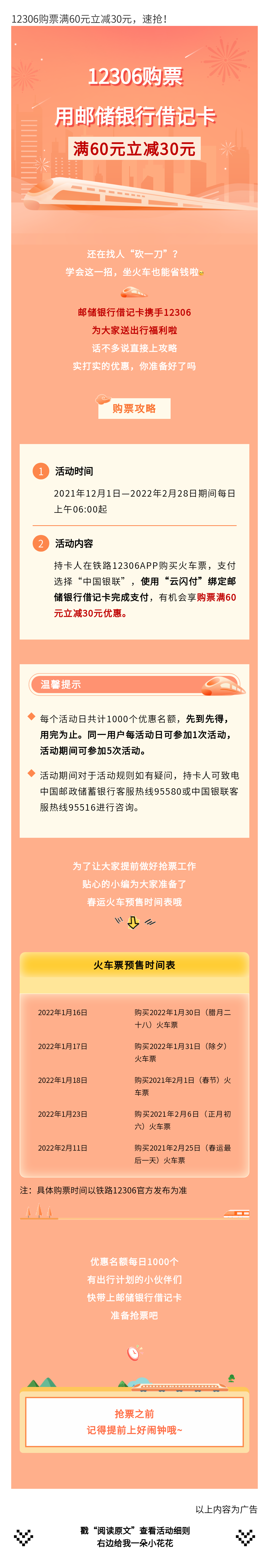 12306购票满60元立减30元,速抢!