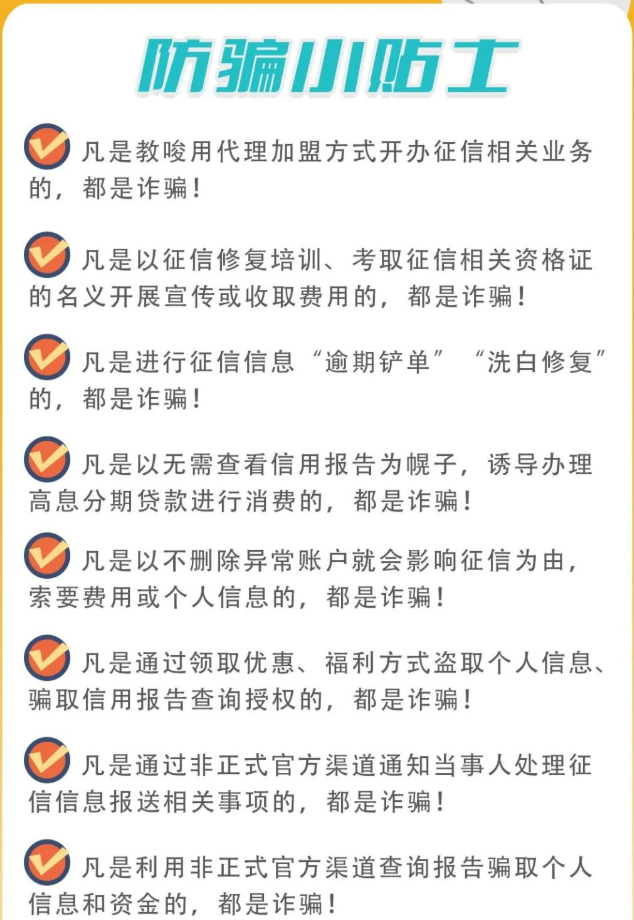 近年来,随着生活节奏的不断加快,人们在生产、生活中对资金的需求也在不断增加,征信在人们的工作、生活、学习中就显得格外的重要。但在日常生活中逾期、借贷不还、拖欠各类费用等情况还是层出不穷,进而在个人征信中形成相关负面信息,成为个人征信报告中的污点,随之而来的“征信修复”、“征信洗白”、“征信铲单”等虚假宣传和诈骗也在社会各个领域中频繁出现,利用人们对个人征信的重视和不熟悉开展诈骗,骗取钱财。