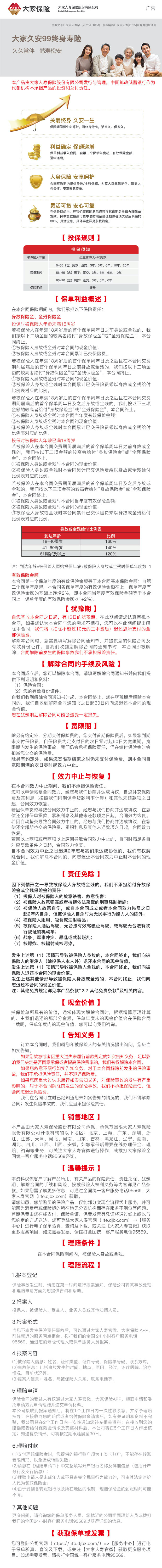 大家久安99终身寿险
