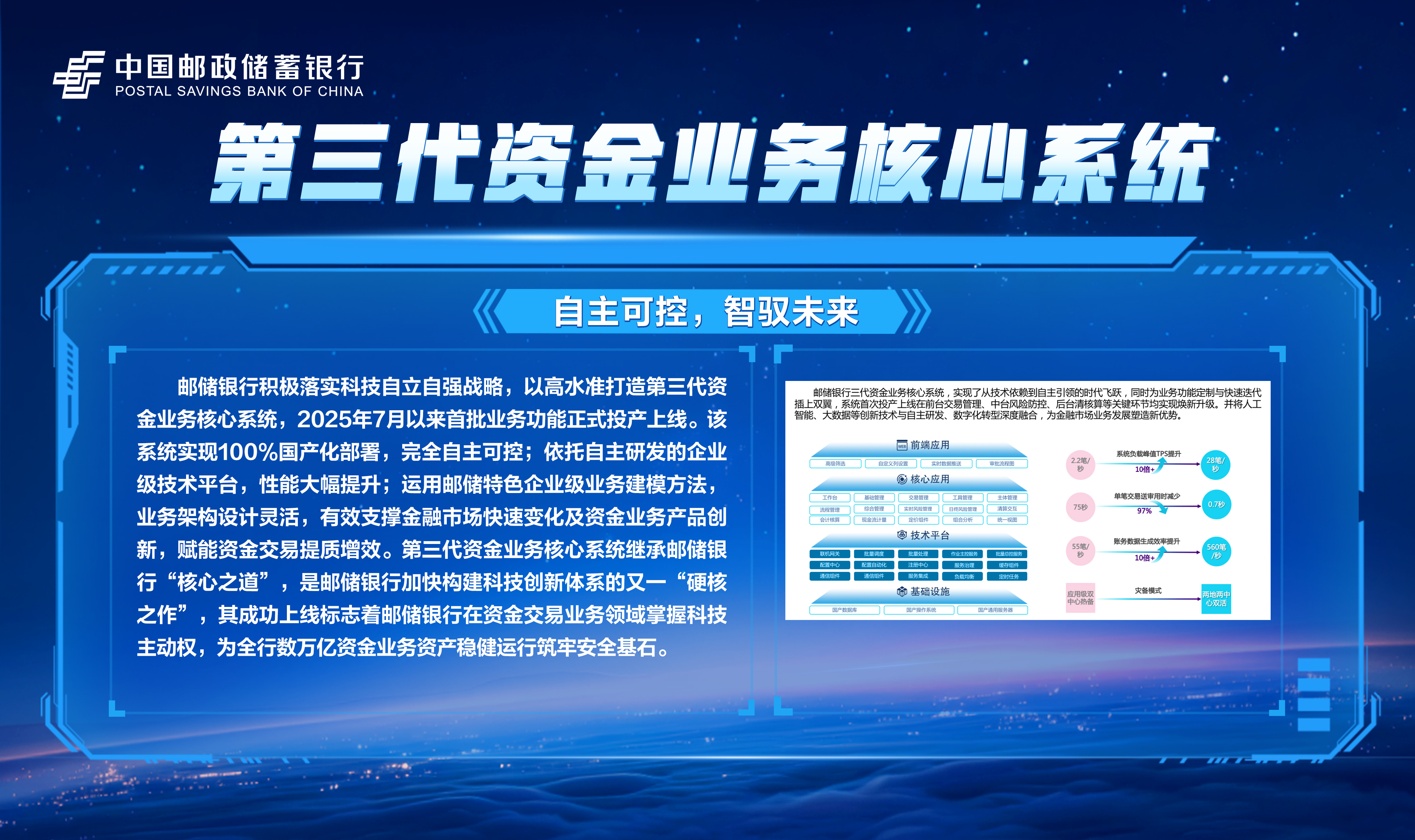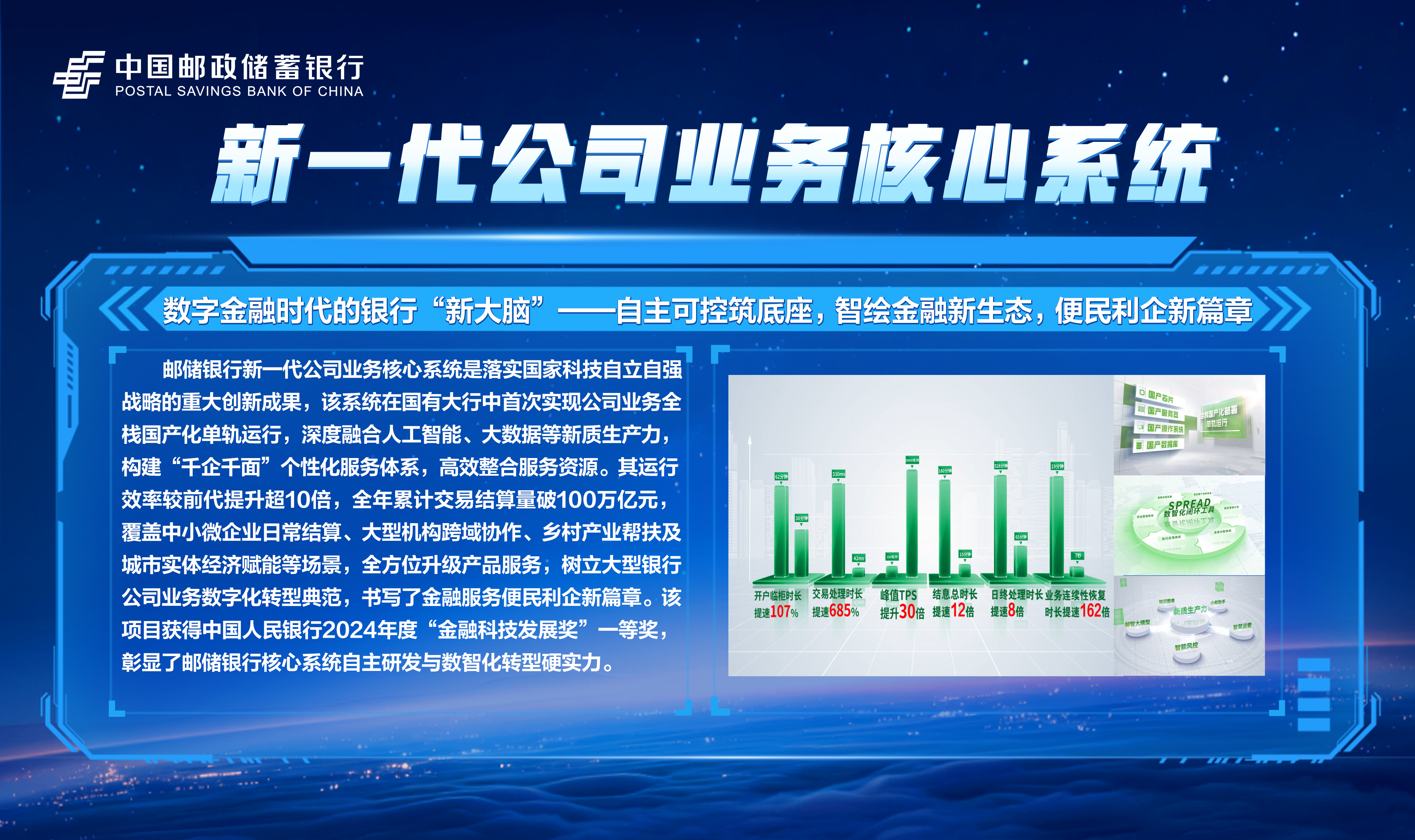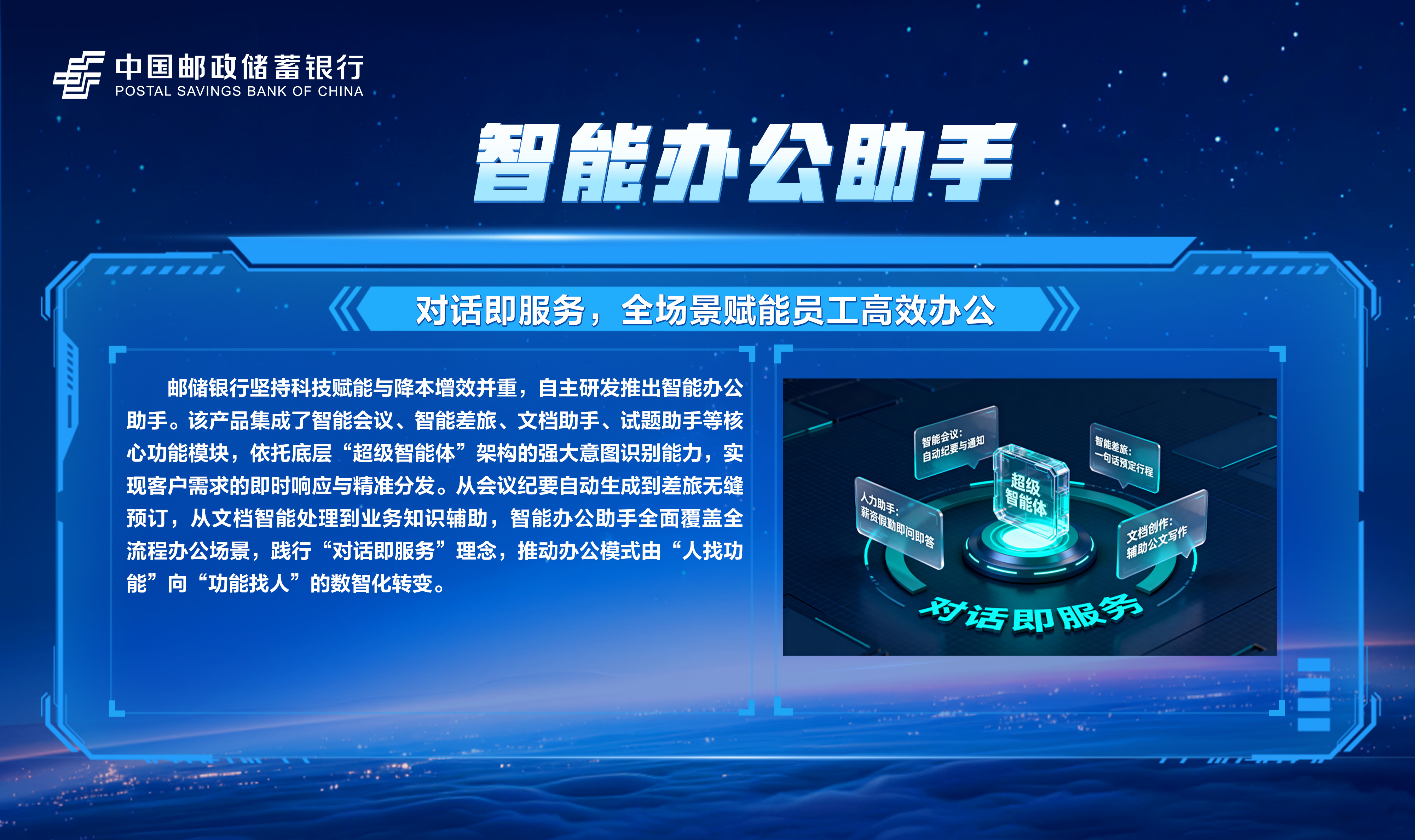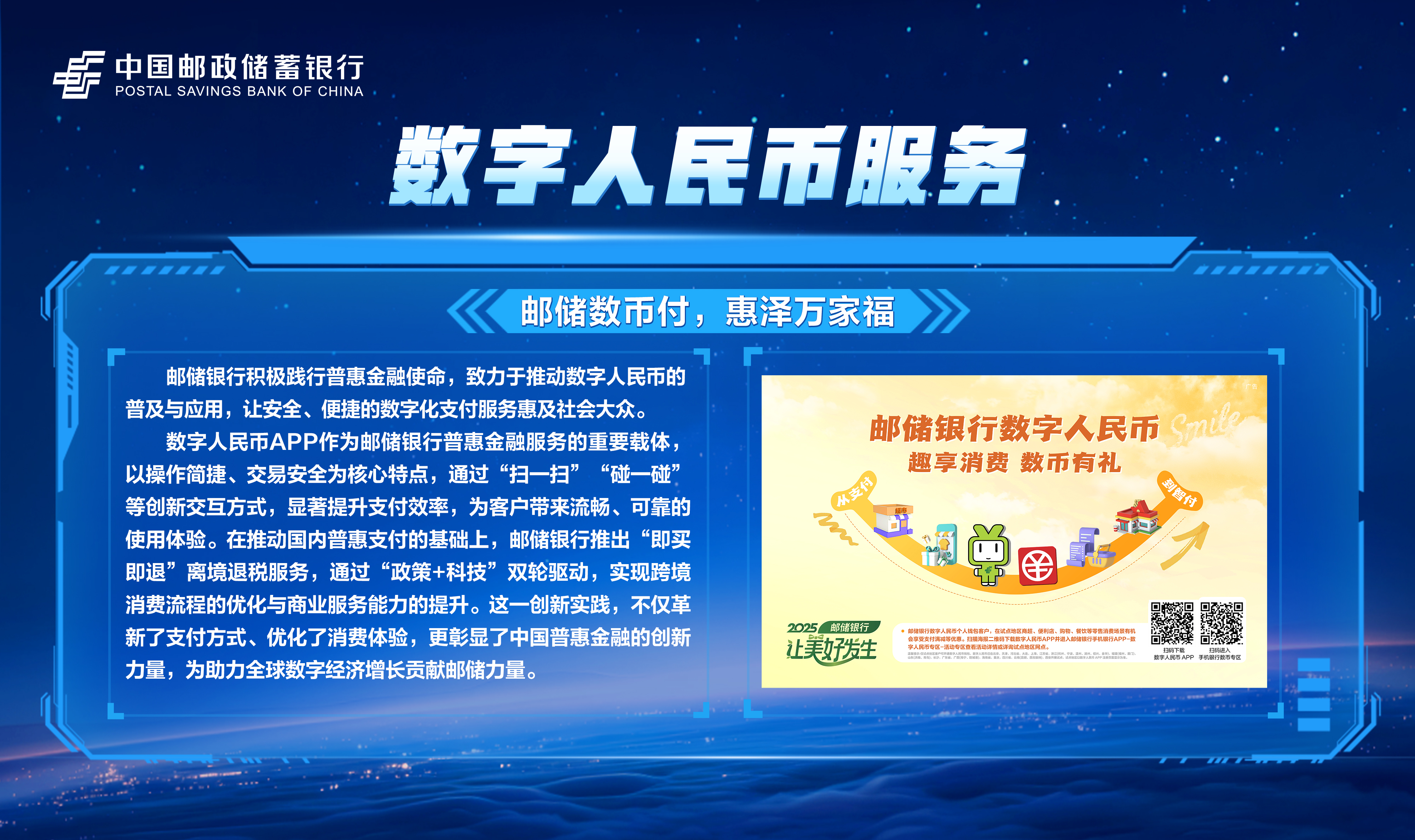 邮储数字金融大会暨手机银行11.0发布会隆重举行!本次大会主题为“开启数字邮储i∞纪元”。三载同行,初心不改,自2023年“拥抱数字邮储i时代”战略初探,到2024年“书写数字邮储@i时代”的实践初行,我们始终拥抱科技浪潮,以AI之笔,绘就邮储数字金融新图景。今年,我们将发布“AI2ALL”数字生态、手机银行11.0版本等服务成果,全方位呈现邮储银行在数字金融领域的创新突破与实践进展。诚邀您与我们共同见证这一重要时刻,携手开启数字邮储的无限新纪元!