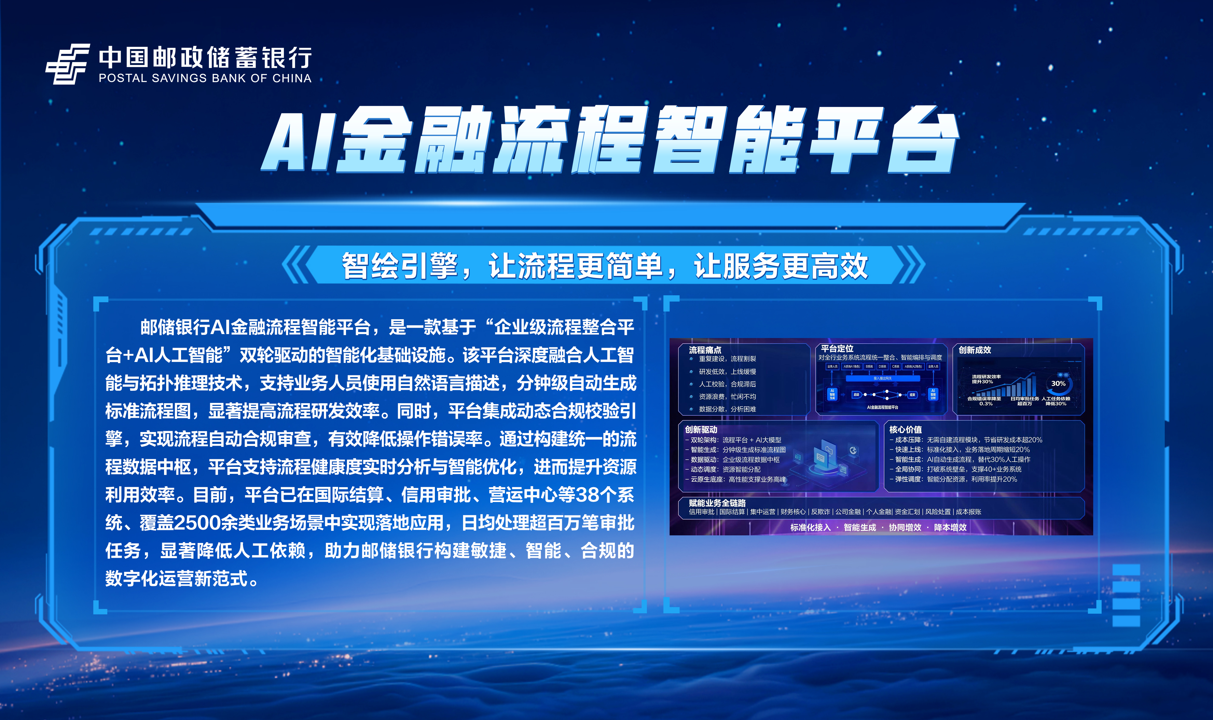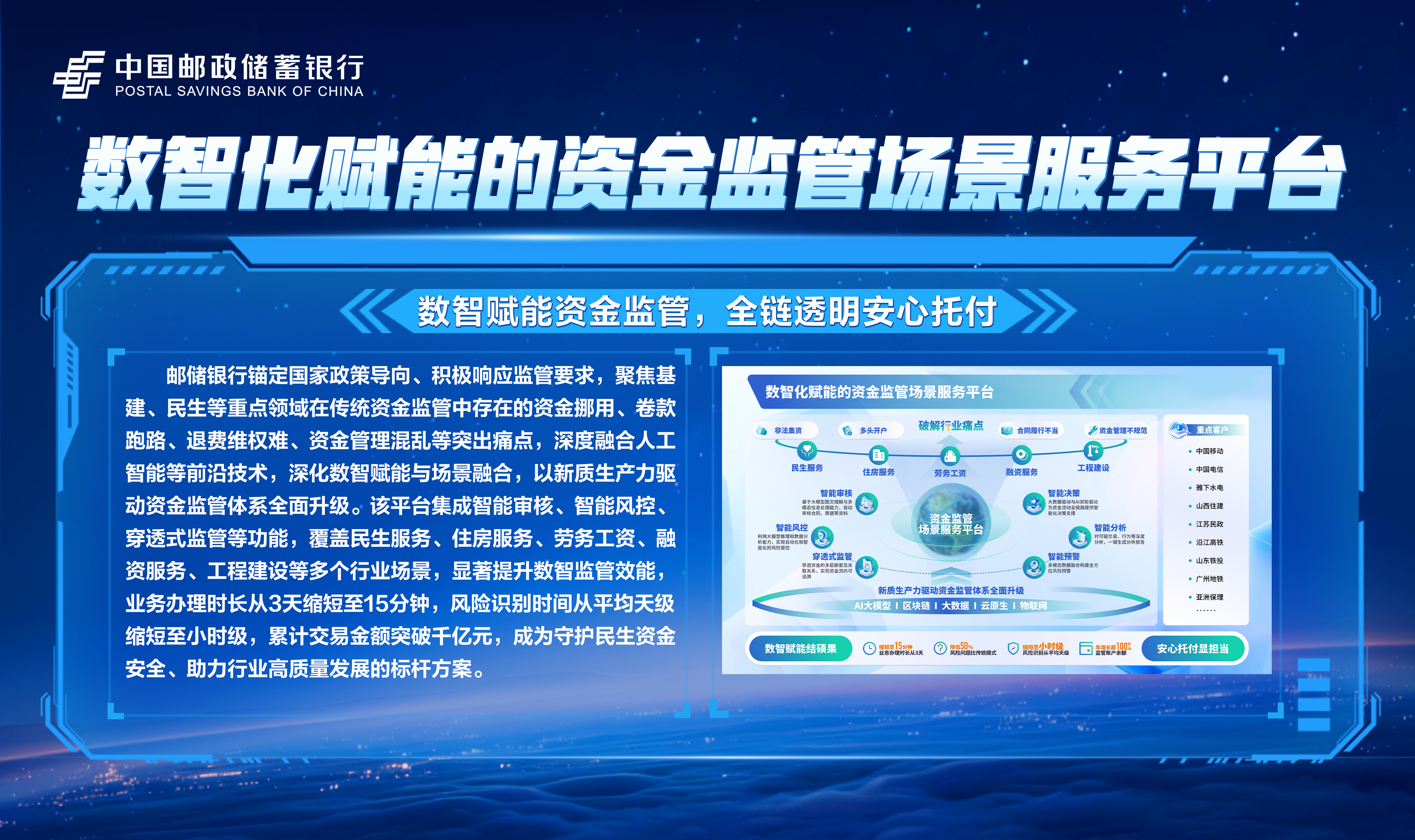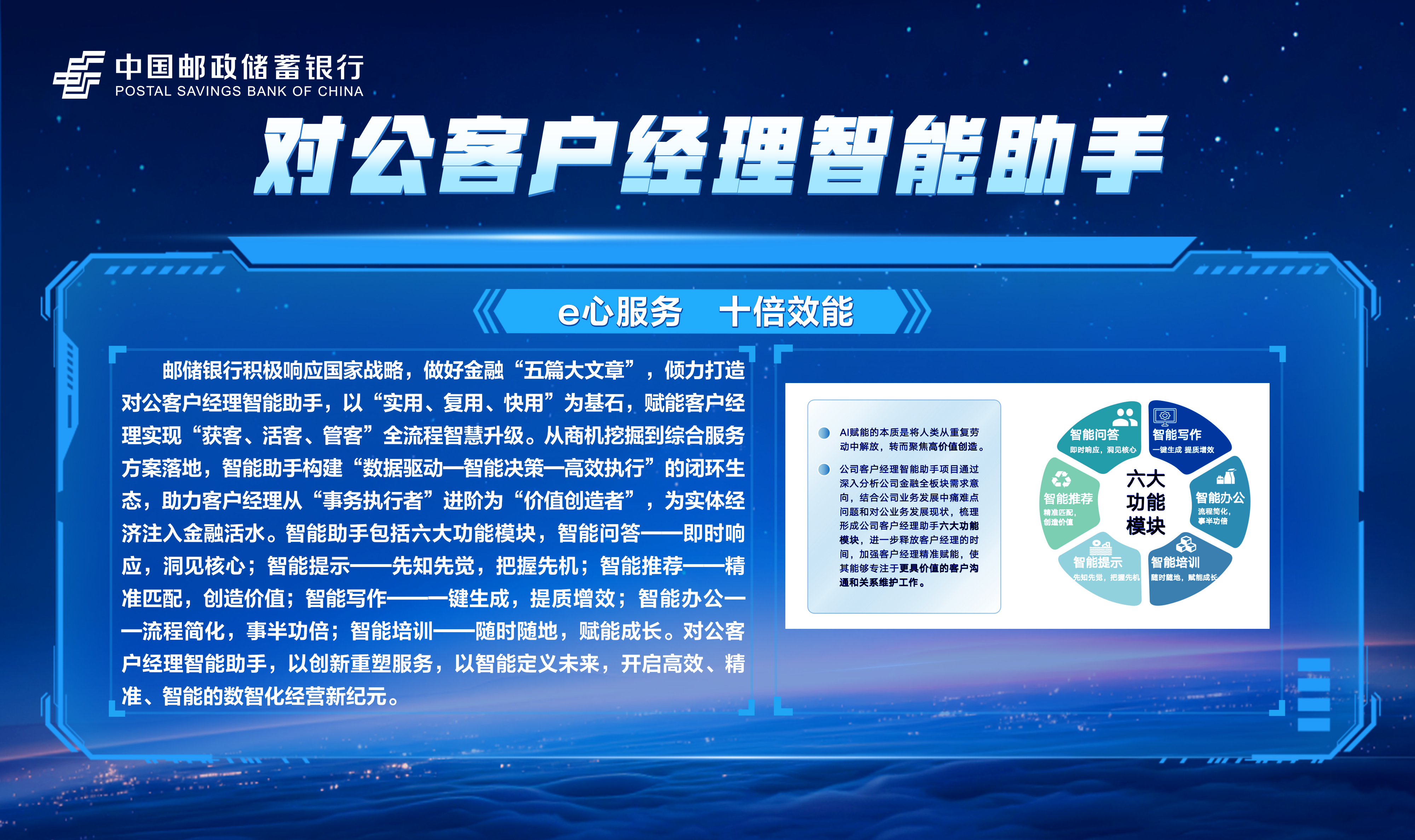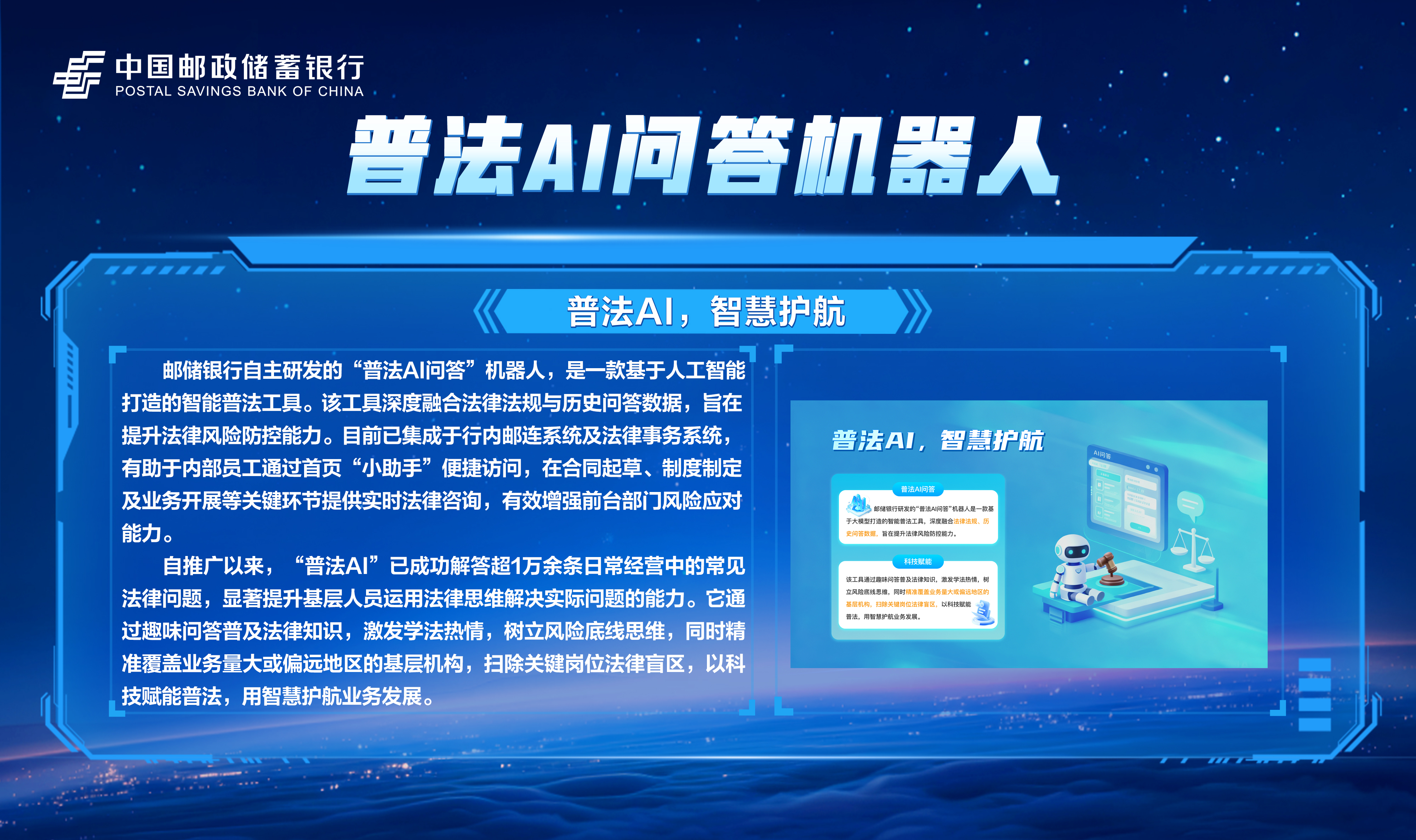 邮储数字金融大会暨手机银行11.0发布会隆重举行!本次大会主题为“开启数字邮储i∞纪元”。三载同行,初心不改,自2023年“拥抱数字邮储i时代”战略初探,到2024年“书写数字邮储@i时代”的实践初行,我们始终拥抱科技浪潮,以AI之笔,绘就邮储数字金融新图景。今年,我们将发布“AI2ALL”数字生态、手机银行11.0版本等服务成果,全方位呈现邮储银行在数字金融领域的创新突破与实践进展。诚邀您与我们共同见证这一重要时刻,携手开启数字邮储的无限新纪元!