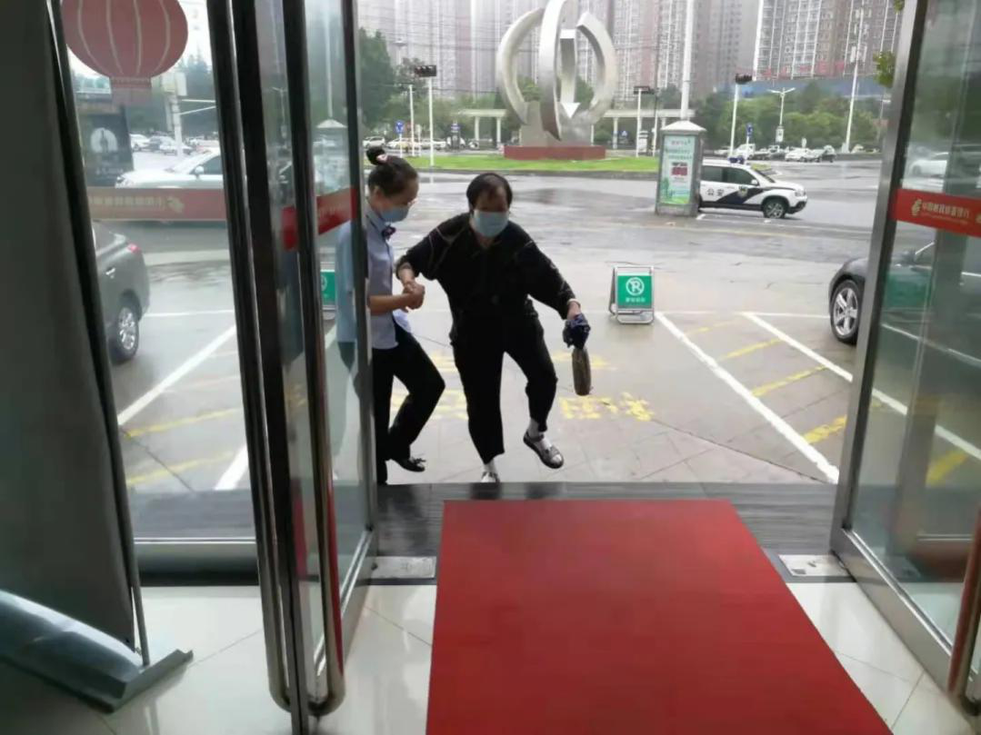 “阿姨您慢点!小心,地面有点湿,我扶着您上台阶!”看到一位老人在门口张望,邮储银行郑州新密市支行大堂经理赶紧跑出去扶着老人进了网点。原来,老人担心暴雨天气影响手机支付,一大早冒雨来到邮储银行支取现金。刚走到门口,邮储银行的工作人员就迎了上来。得知老人的需求后,工作人员赶紧领着老人,帮助她支取现金。