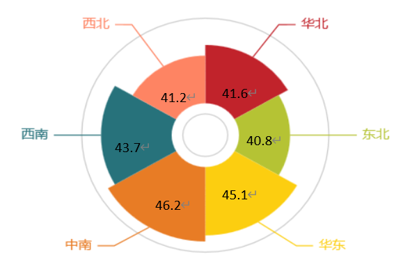 华东地区小微企业指数为45.1,上升0.1个点。其市场指数为43.2,上升0.1个点;绩效指数为45.6,上升0.4个点;风险指数为48.6,上升0.1个点。